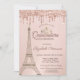 Convites Torre Eiffel, Tiara, Unidades Douradas Rosa Quince