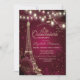Convites Torre Glitter Eiffel, Rosas Burgundy Quinceañera