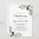 Este convite para batizar floral branco verde tropical é perfeito para um batismo ou batismo bárbaro. A design apresenta palmeiras verdes folhas buquês com flores brancas adoráveis.