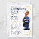 Reúna amigos, colegas de trabalho e família para celebrar a aposentadoria de uma pessoa especial com este Convite de festas de aposentadoria engraçado. Projetado com uma imagem de desenho animado de um empresário, texto colorido e estrelas em um fundo branco. para personalizar, simplesmente insira seus detalhes em nosso modelo fácil, substituindo o texto de amostra.