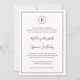 Simples Convite de Casamento com seu monograma em um círculo no topo e seus detalhes de casamento cercados por uma fina fronteira. Seus nomes estão em uma fonte elegante de script manuscrito. Todos os elementos de design são burgundy sobre um fundo branco e podem ser alterados na ferramenta de edição de design. O esquema clássico e tradicional faz este excelente de convite para um casamento formal.