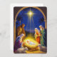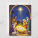 Share the sacred meaning of Christmas with this powerful flat holiday card featuring a traditional Nativity scene. The serene illustration captures the Holy Family kneeling by the newborn baby Jesus in the manger, with the Three Wise Men and gentle sheep attending, all bathed in the light of the Star of Bethlehem. This card is an elegant and meaningful way to send Christmas greetings and wishes of peace and faith during the holiday season.