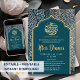 Featuring a stunning blue and white Islamic geometric tile pattern, this invitation brings a touch of traditional heritage to your Iftar dinner. A vibrant and cultural choice for your celebration. Get started quickly with this printable and instant download template.