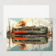 Vintage Caravan Trailer RV com reflexo do céu na água para personalizar, personalizar mudando para seu nome