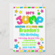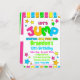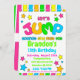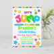 Encontrem todos os seus convidados animados para a sua festa com este convite brilhante e divertido!