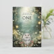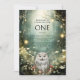 Um tema selvagem encantou o convite de primeiro aniversario de florestas para rapazes ou raparigas. Uma coruja mágica florestal entre flores e luzes brilhantes. Personalizar para uma garota ou um garoto. Disponível em impressão, como download digital ou ambos.