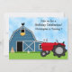 Trator Vermelho Personalizado e Convite de aniversário de Fazenda Blue-Barn para Meninos. Alguns gráficos por artwork©delightful-doodles.com.~