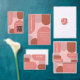 Coleção de casamentos com arcos de moda com coral, rosa empoeirado, rosa-pincel e terracota com tipografia de pêssego mole