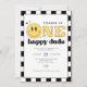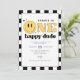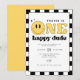 Este primeiro convite de aniversário de um cara feliz apresenta uma fonte retrorativa divertida e um smiley face amarelo com um plano de fundo controlado. Este convite é perfeito para o seu homenzinho celebrar o seu primeiro grande aniversário! Par com qualquer coisa na Coleção TRAVIS para um olhar coeso.
