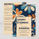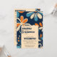 Groovy Retro 70ies Teal Blue Shades Daisy Flores de margarida marinho em um convite para modelo de casamento para download digital instantâneo, convite para casamento retrô moderno, cores mutadas, tipografia moderna retrô, QR RSVP, se não for necessário - basta apagar esses campos do menu suspenso