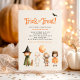 Você é convidado para um Convite para Trick Treat do Feriado de Halloween — onde os fantasias são adoráveis, as guloseimas são doces, e a diversão nunca acaba! Esta ilustração de coloração d'água manchada apresenta crianças brincalhonas em fantasias, abóboras sorridentes, um curioso gato preto, e morcegos flapping, todos reunidos em um design moderno, criativamente composto. Com o seu estilo doce e encantador, este convite é perfeito para dar o tom para uma comemoração de Halloween cheia de graça que os seus pequenos convidados não esquecerão!