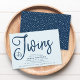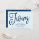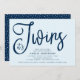 Convites Trendy Blue Script É o Chá de fraldas dos Gêmeos