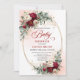 Celebrate a special upcoming arrival with this boho baby shower invitation featuring rich burgundy, deep red, marsala, and maroon watercolor peonies, accented with soft eucalyptus greenery and elegant gold details. This warm, romantic color palette creates a stylish and inviting look, perfect for bohemian, rustic, or modern baby shower themes.