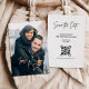 Customize this trendy calligraphy script Save the Date card by adding a photo of the couple. On the back, include the event details, along with your QR code and website information. To personalize the design, simply click the 'Edit/Personalize' button. Explore the entire collection for a cohesive look.