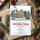 Invite your loved ones to a warm and joyful celebration with this watercolor Christmas invitation featuring a cozy Christmas house and festive winter scene. Designed in a classic red and green color palette, this card captures the timeless beauty of the season with its hand-drawn details and playful lettering.