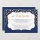Perfeito para o bebê nº 2! Trendy marinho azul e falsos pontos dourados "drop-in" Convite para Baby Sprinkle. Ajude a desvendar seus convidados pedindo educadamente que eles vistam uma máscara e passem a qualquer momento dentro de um determinado intervalo de tempo. Veja toda a coleção para coordenar itens (adesivos, notas de agradecimento, guardanapos, etc.)