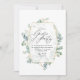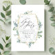 Convite de festas de jardim herbário de eucalipto herbário de madeira florestal selvagem com estrutura geométrica dourada. Convide seus convidados para uma festa de jardim elegante e refrescante com este convite teórico sobre o eucalipto. Com delicadas folhas de aquarela eucalipto e uma estrutura geométrica de ouro, este design é perfeito para aniversários, chás de panela ou comemorações ao ar livre. Totalmente personalizável para se adequar aos seus detalhes de eventos especiais, este convite expele sofisticação e charme naturais.