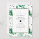 Trendy bridesmaids luncheon convidando folhas verdes de praia tropical e um padrão geométrico preto e branco.