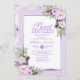Bonito, moderno, púrpura cúbica (faux), fundo brilhante e delicado design de fronteira floral feminina para estes adoráveis convites de festas apenas para ela.