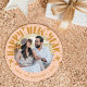 Designed to fit the circle die-cut, this trendy holiday card features the message "Happy New Year" in a modern, handwritten font that wraps around the circle photo frame. Hand-drawn stars and dots add a festive, whimsical touch to the design. The back of the card features a coordinating pattern. This design is perfect for kids and teens!
