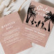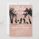 Transforme uma celebração de solteiro dia num fim de semana inteiro de diversão com este convite de aniversário da Girly Getaway. Projetada com uma mistura de fundo cor-de-rosa pincelado e mulheres silhuetas prontas para a festa, é a maneira perfeita de convidar amigos e família para um fim de semana memorável de aniversário. O convite inclui também palmeiras tropicais e um modelo de aniversário fácil de personalizar de ambos os lados.