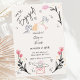 Um moderno convite de noivado escrivado feito por mão branca e escrivada seguindo a última tendência no papel de carta do casamento. Cuzub cupids bonitos e uma borda ondulada de flor silvestre é um convite de tendências contemporâneas perfeito.