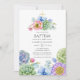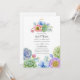 Convite para batismo a aquarelas vibrantes, com flores rosas e roxas, suculentos e folhas de eucalipto.