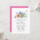 Chá de fraldas a longa distância de cor d'água vibrante por convite por correio com flores rosa e roxo, suculentes e folhas de eucalipto.
