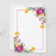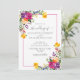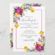 Bonito e moderno, este convite de casamento floral do boho apresenta flores pintadas manualmente com aquarelas em tons de roxo, laranja, fuchsia e amarelo, com tipografia com letras rústicas manuscritas. Entre em contato com o designer para produtos correspondentes. Copyright Elegant Invites, todos os direitos reservados.