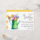 Os convites para casamentos com estilo rústico de tendências, com rega a aquarela, podem cheio de tulipas e flores e um padrão listrado branco e amarelo no verso da carta. Estes convites são perfeitos para um país, uma fazenda, uma festa de jardim, um quintal ou uma festa de casamento de estilo. Esta design também está disponível para outros eventos. Para solicitação personalizada, entre em contato conosco através da loja