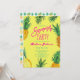 Um convite amarelo de tendência com padrão de abacaxi em fundo amarelo para uma festa de verão