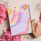 Três é um convite víbora ao aniversário de 3 anos do Arco-Íris em fundo roxo para meninas