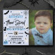 Esses convites divertidos e elegantes são perfeitos para quem está celebrando o 3º aniversário no Halloween. O design apresenta tudo o que é assustador, desde um gato preto com morcegos voando até uma teia de aranha, fantasmas, uma vassoura de bruxa, caveira e osso, bola de cristal mágica e uma abóbora com cara de jack-o-lanterna, tudo em preto, branco e tons de azul. A foto e a redação do modelo são fáceis de personalizar e os convidados da sua festa vão se assustar quando receberem esses convites pelo correio!