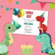 Celebre os três grandes do seu pequeno com o Convite de Aniversário de Três Rex Cute T-Rex Dinossaur! Perfeito para um terceiro aniversário, este convite apresenta um adorável design T-Rex com cores divertidas que acrescentam um rugido de entusiasmo à festa. Ideal para jovens fãs de dinossauros, este convite estabelece a palco de um dia divertido e memorável de aventuras de estômago, chomping e dinossauros. Totalmente personalizável com os detalhes de sua festa, é a maneira mais doce de convidar família e amigos para uma celebração de "Três-Rex"!