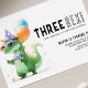 Apresentando o convite de Aniversário do Três Dinossauro Rex, perfeito para a terceira festa de dinossauro do seu pequenino! Este adorável convite apresenta um Tiranossauro Rex moderno vestindo um chapéu de na moda, óculos de sol, e balões de carregando para uma boa medida. As cores ousadas e vibrantes do convite darão o tom para uma celebração divertida e inesquecível do seu aniversário de 3 anos. O design também oferece bastante espaço onde você pode incluir todas as informações essenciais necessárias para seus convidados. Torne o seu grande dia ainda mais memorável com este divertido convite de aniversário do Três Dinossauro Rex. Celebre os 3 grandes em estilo e ordem agora!