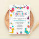 Convite de aniversário de dinossauro branco e colorido. Comece com convites tão adoráveis quanto ferozes! Nossas lindas personagens dino trazem a magia pré-histórica à vida, prometendo um bom momento para todos os seus pequenos partidários. Arte original de Kristine Lee www.kristineleedesigns.com
