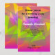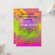 Uma composição abstrata interessante. Triângulos geométricos e retângulos em cores de uma paleta de cores dos anos sessenta. Verde lima, rosa quente, roxo real, laranja tangerina e mais. Essas formas estão caindo em todas as direções, dando uma sensação de movimento e deslocamento. Uma peça divertida e psicodélica. Personalize com os detalhes da sua festa de aniversário.