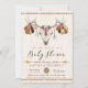 Rapazes, convites tribais para bebês com pena de boho e crânio de veado e setas em um fundo de madeira rústica. Você pode personalizar facilmente este convite tribal de chás de fraldas para seu evento simplesmente adicionando seus detalhes.