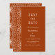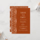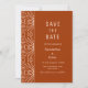 Esta design de laranja e creme queimada tribal é uma mistura de estilos africanos, ilhas do Pacífico e astecas. Perfeito para casamentos de terra, praia ou selva.