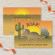 A ilustração original do desenho animado de Destei de um dinossauro triceratops, de cor marrom e giro, em pé na cena do deserto durante o pôr do sol. Há algumas rochas, um cacto e uma planta em cena. A grama está seca e pintada em castanho. O sol está se pondo bem atrás do dinossauro criando uma matiz laranja avermelhada para o céu. Personalize as áreas de texto de exemplo com os detalhes do seu evento.