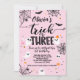 Trick or three! A perfect blend of pink, white, and black, with cute ghost motifs for a Spooktacular 3rd Birthday. This invitation sets the tone for a charmingly spooky celebration that's all about our little one's big milestone. The playful design captures the essence of Halloween while adding a touch of adorable to the festivities. Get ready to invite friends and family to a memorable day filled with smiles, costumes, and delightful surprises.