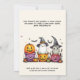 Este convite da festa de Halloween apresenta um design brilhante e carinhoso com três personagens adoráveis de Halloween em um cenário festivo. A design centra-se num fantasma amigável vestindo um chapéu lúdico, uma abóbora alegre, e uma múmia adorável, cada balde colorida de truque ou travessura alegremente aninhada. Os baldes estão cheios de doces e guloseimas, somando a vibração festiva e lúdica do convite. O fantasma, com seu chapéu charmoso, flutua ligeiramente acima da abóbora e da múmia, que estão espiando seus baldes. Os próprios baldes são brilhantes e coloridos, com padrões divertidos como listras e bolinhas, que valorizam o tema alegre do convite. O pano de fundo do convite é um gradiente macio e pastel, misturando matizes gentis que complementam as cores vibrantes dos personagens e baldes. Este pano de fundo cria uma atmosfera quente e convidativa que se adapta à natureza lúdica do design. No topo da frente, a legenda diz: "Você está convidado para um Trick-or-Tratat EXTRAVAGANZA!" O texto é ousado e divertido, destacando-se contra o fundo pastel e combinando o tema lúdico do convite. Abaixo da legenda, há espaço para detalhes personalizáveis como data, hora e local da parte, fazer que seja fácil adicionar todas as informações necessárias. O verso do convite apresenta o mesmo plano de gradação pastel, com uma sutil continuação do tema divertido da frente. Há espaço adicional para texto ou notas extras, onde você pode incluir mais detalhes ou uma mensagem especial como "Os figurinos são um must!" ou "Prepare-se para uma noite de doces e diversão!" Esta design combina personagens adoráveis com um pano de fundo festivo, fazer perfeito para uma alegre e memorável celebração do Dia das Bruxas.