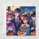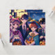 Convites para festa de Halloween para festa infantil. Pequeno truque ou tratar crianças bonitinhas de anime em fantasias com cheio de doce de abóboras.