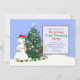 Convite de festas de aparar árvore com minha obra de arte original de um boneco de neve decorando sua árvore de Natal. Imagem do boneco de neve menor nas costas. Todo o texto é personalizável para que você mude para suas próprias informações.