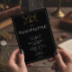 Ponha o tom para uma celebração eterno e dramática com este único convite para casamento unilateral, perfeito para romance escuro e casamentos inspirados em pagão. Apresentando um fundo negro, fontes góticas do mundo antigo, e um emblema de ouro triplo de deusa, este convite evoca uma elegância simples. A parte de trás inclui detalhes essenciais de casamento, como RSVP, informações de recepção e seu site de casamento. Este design traz o caráter ousado e o charme alquimista ao seu grande dia, e é uma opção econômica para convites que exigem cartões de gabinete. Criado pela imprensa simplesmente de farmácia.