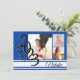 Convite azul, branco e preto 2023 da banda varsity. Três fotos podem ser adicionadas a este convite festivo de graduação de 2023 ou anúncio em vermelho. Personalize o texto no ajustado das suas necessidades.