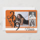 Convite laranja, branco e preto 2019 da banda varsity. Três fotos podem ser adicionadas a este convite festivo de graduação ou anúncio de 2019 em laranja. Personalize o texto no ajustado das suas necessidades.