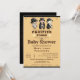 Um fundo de conselho de madeira e uma ilustração de três bebês, vestindo fraldas, pacificadores e roupas de tamanho maior e parecendo personagens do Oeste Selvagem, são a peça central desse modelo divertido, engraçado e fofo de um chá de fraldas para uma mãe de celebração de tripletes! Eles são o "Posse Pacificadora" e todos devem ajudar as mamães a se prepararem para eles! Personalize cada linha de texto.
