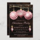 Rosas claro esbeltas ornamentos de natal em madeira castanha escura e fundo de galhardetes dourados