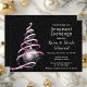 Este convite para troca de ornamentos elegante e chic de feriado apresenta uma árvore de Natal rosa e preta com um bauble. O texto combina o script manuscrito e as fontes sans serif modernas para um aspecto elegante e sofisticado. A neve caindo, a brilha e as faíscas dão um toque festivo e mágico.